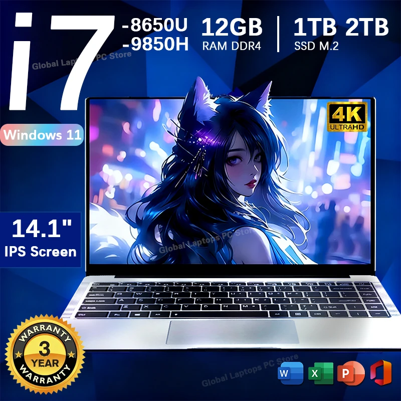 2025 Laptop i7 9850H Portable Laptop Computer 14.1inch 1920*1080 HD Gaming Laptops Windows 11 Pro SSD 2TB DDR4 12GB
