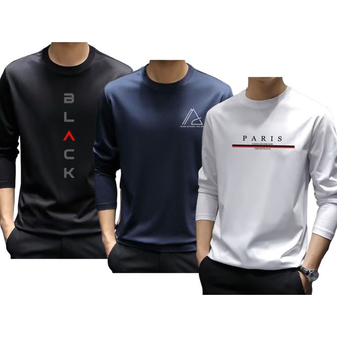 3 Piece Men’s Long Sleeve T-Shirts 100% Cotton – Multicolour