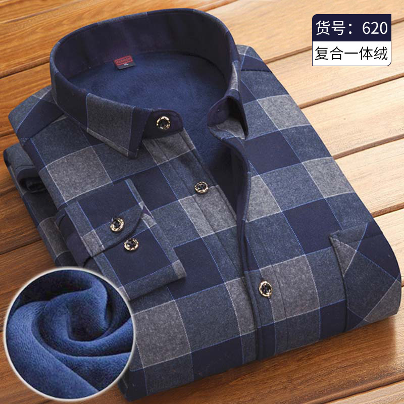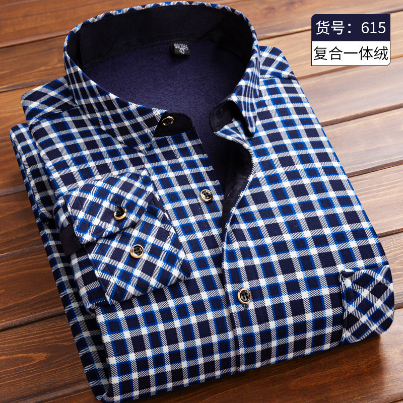 Autumn and winter men’s thickened plus fleece shirt