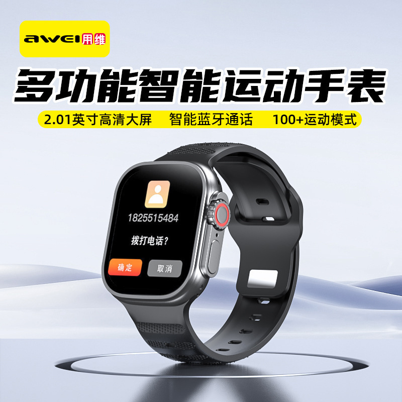 Awei Smart Watch 2.01inch Large Screen Long Battery Life Heart Rate Blood Bluetooth Phone Watch