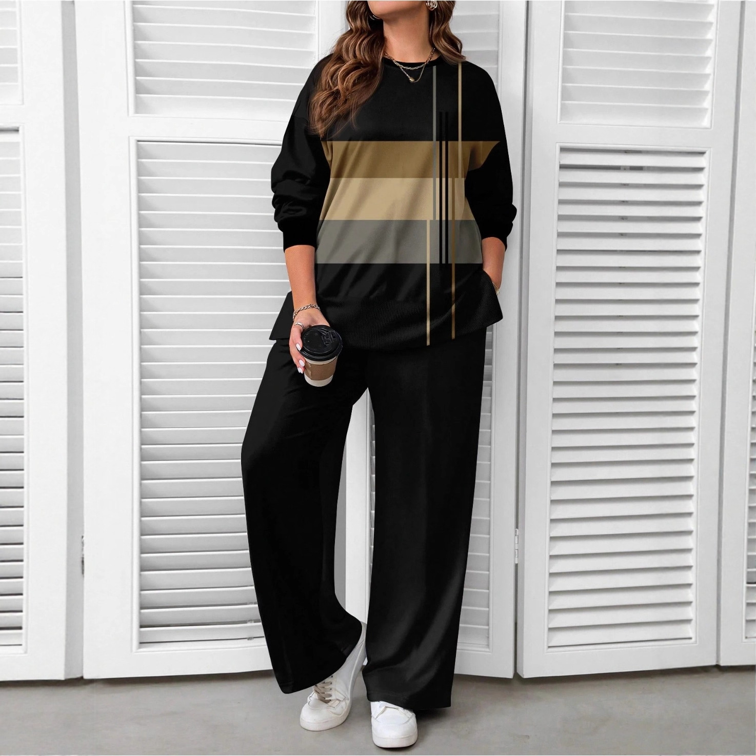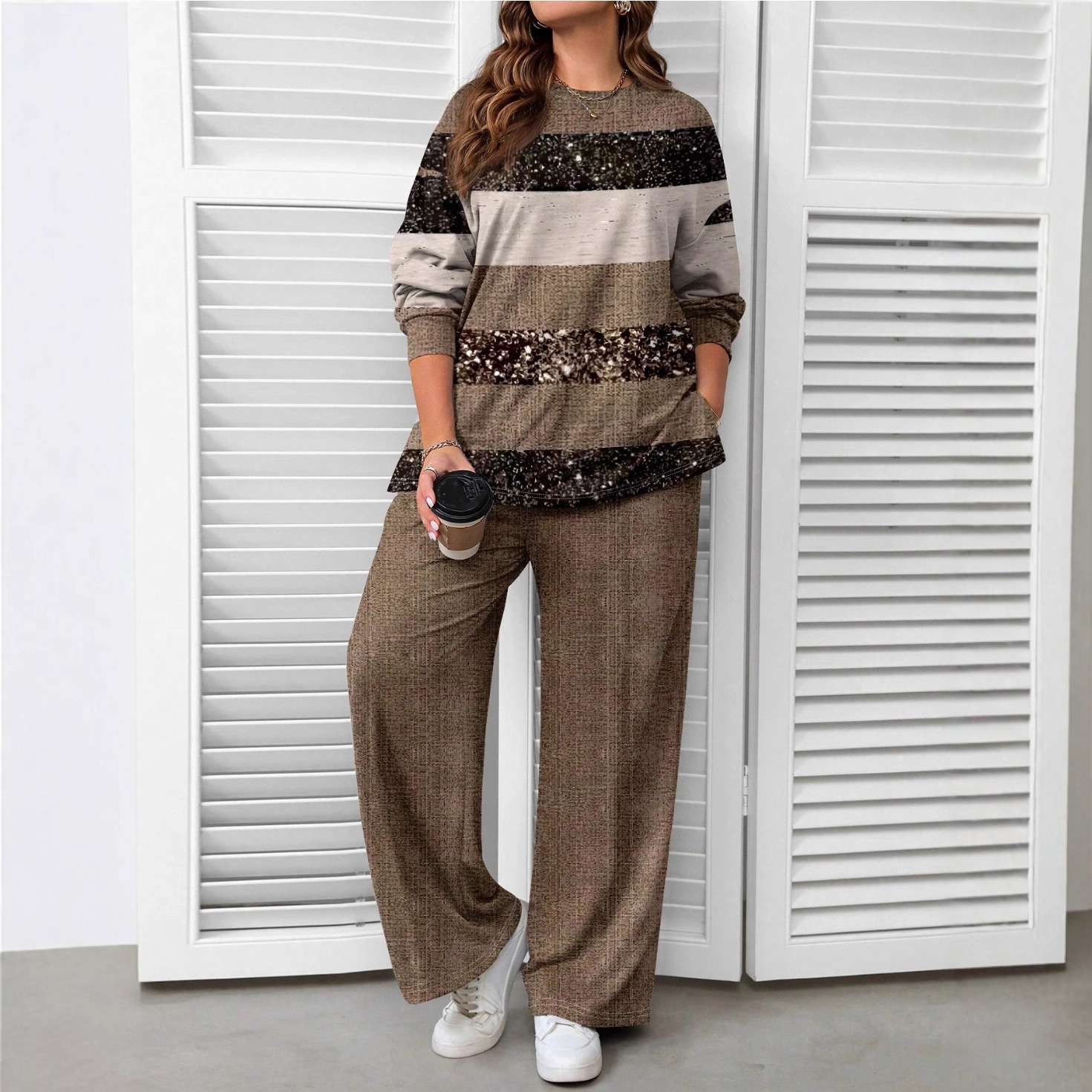 Brown Striped Two-Piece Set