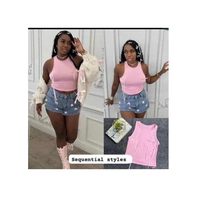 The product appears to be a pink tank top or sleeveless top. The details visible in the image include: