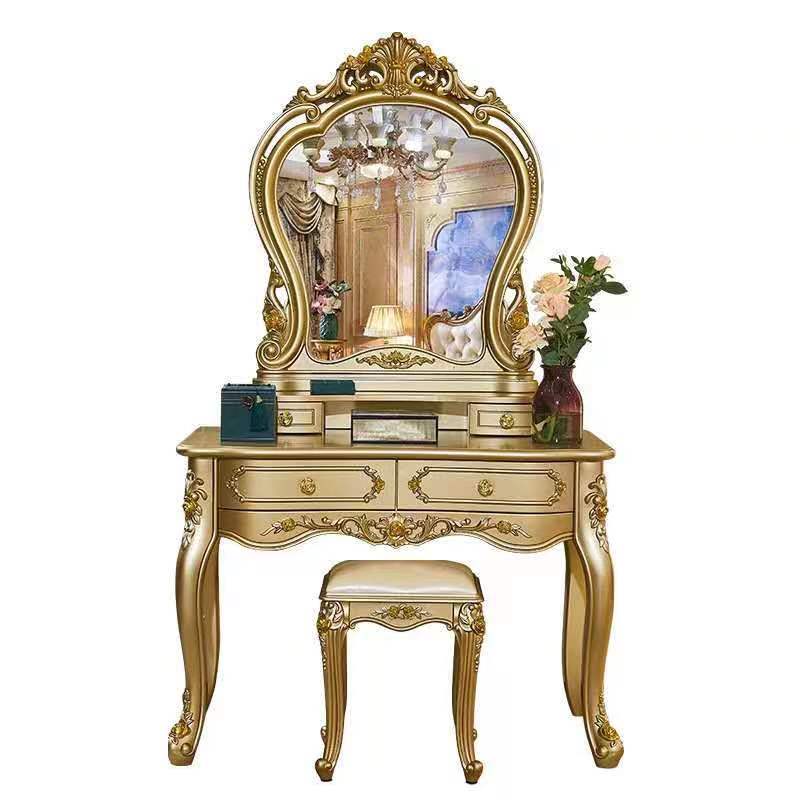 Color: Champagne gold dressing table + dressing stool [round mirror], champagne gold dressing table + dressing stool [crown mirror]