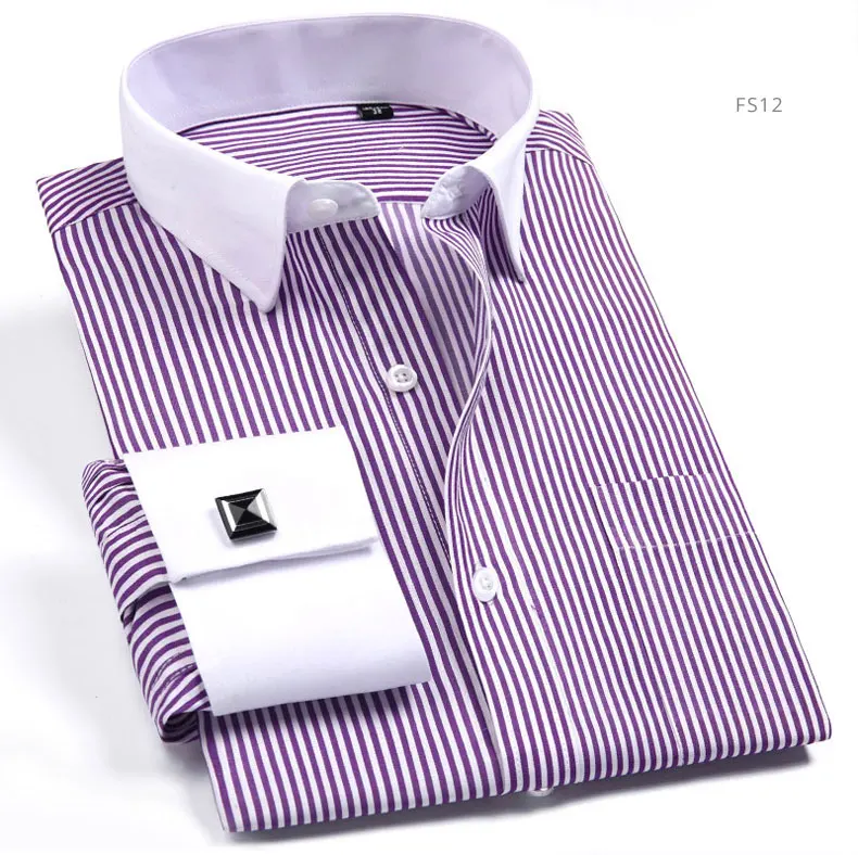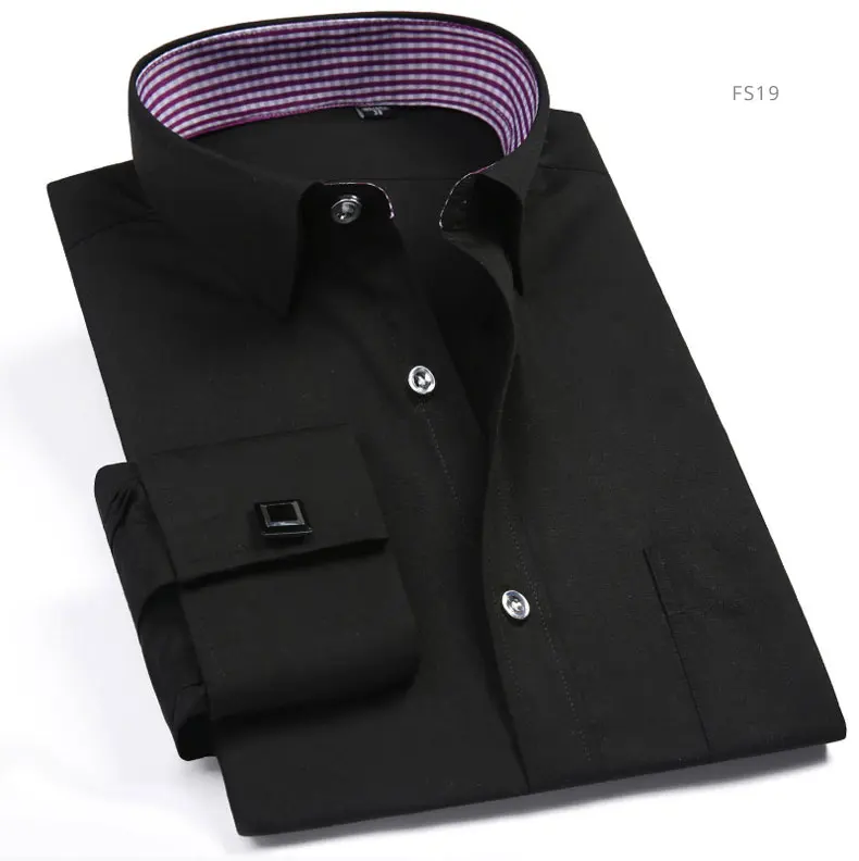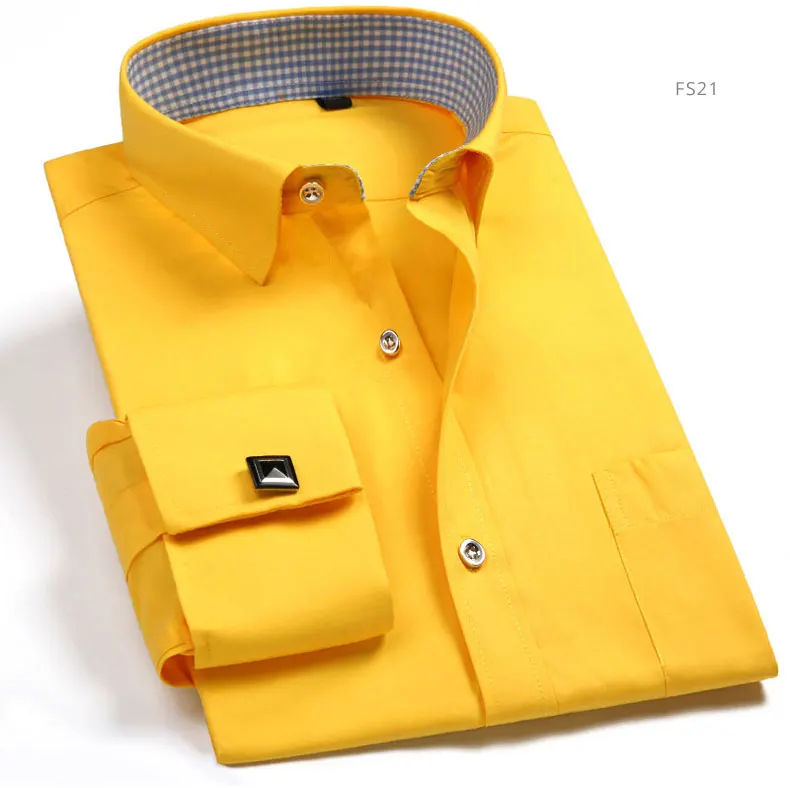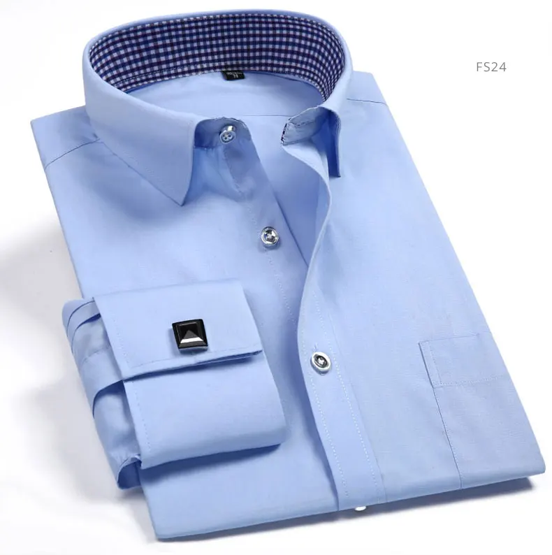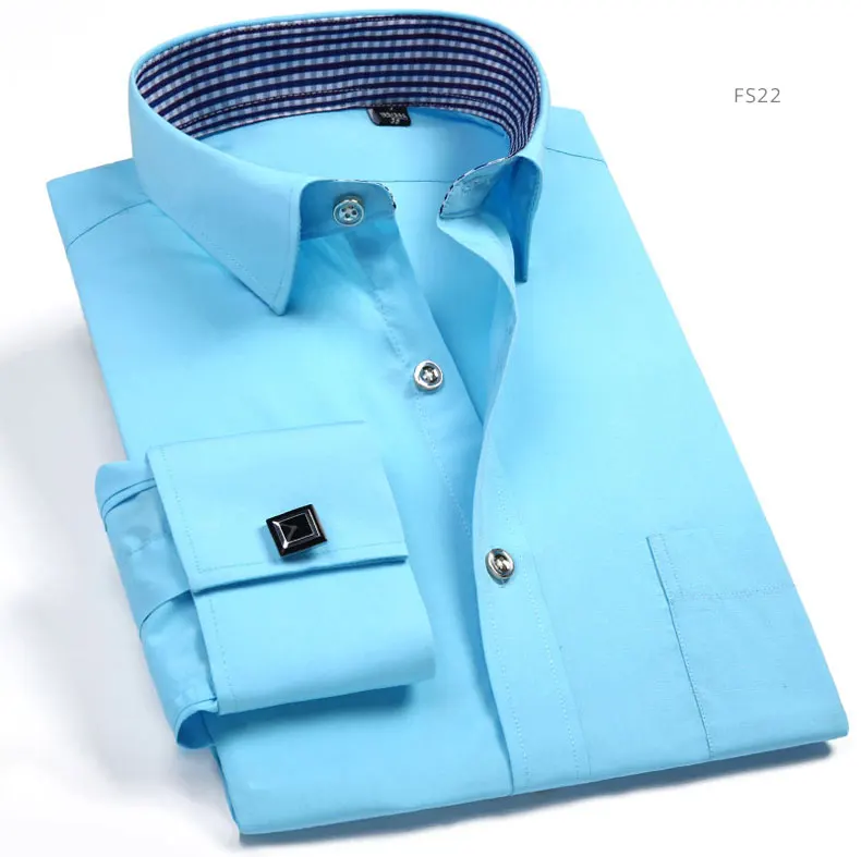 Fashion Mens French Cufflinks Dress Shirts Long Sleeve Y