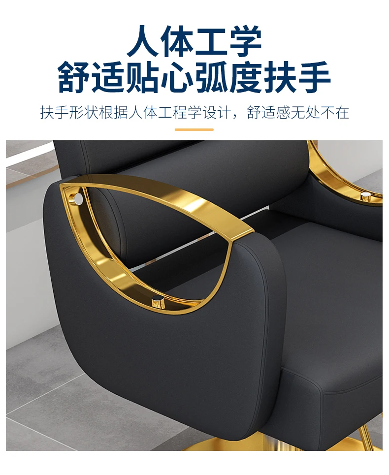 Fashionable Luxury Barber Chair Classic Gold Professional Armrest Chair
