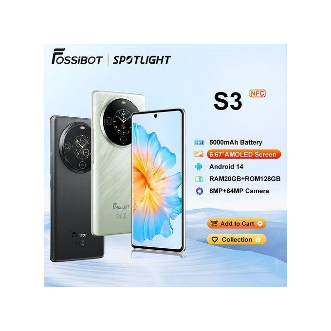 FOSSiBOT S3 PRO Smartphone 6.67″ Display Android 14 8+64MP CAM NFC 6.67″Amoled Screen 5000mAh Fast Charge Cell Phone – Black