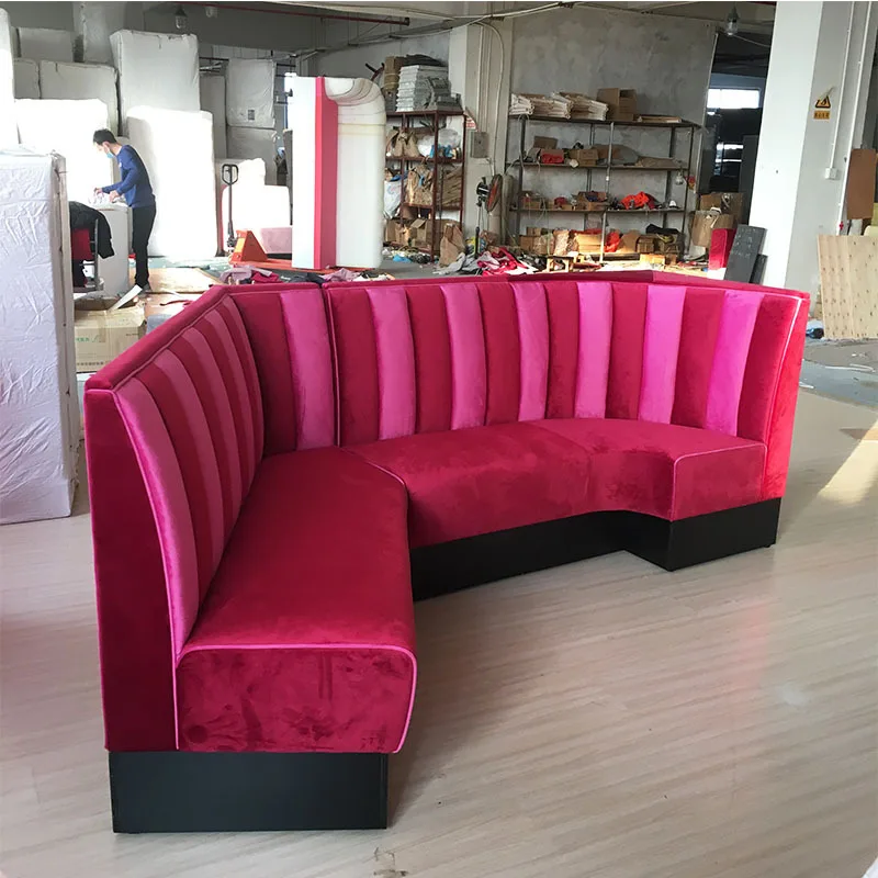 High backrest velvet booth seating KTV cafe furniture luxury bar nightclut poufs bench restaurant banquette leather sofa