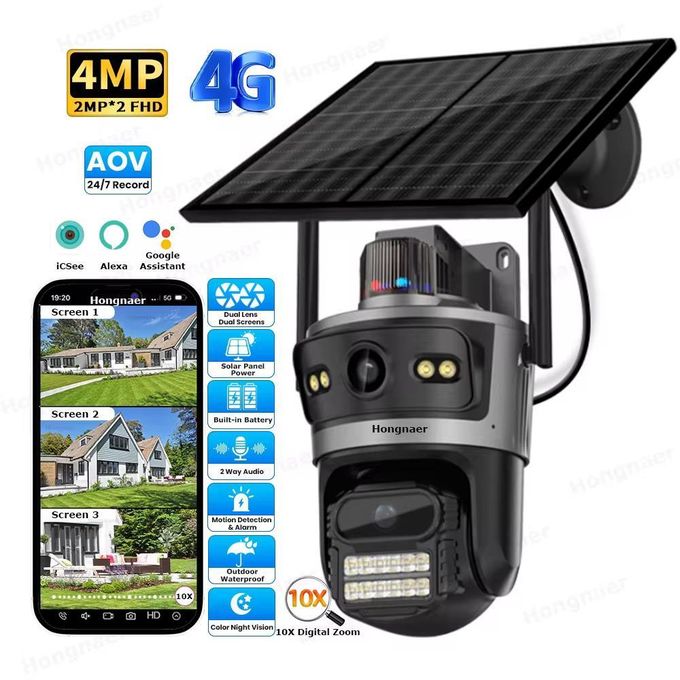 Keep your property safe and secure with this advanced 4G solar-powered security camera. This dual-lens PTZ (Pan-Tilt-Zoom) camera delivers crystal-clear footage, day or night. With 4G LTE connectivity, it operates seamlessly without the need for Wi-Fi—perfect for remote areas. The solar panel ensures uninterrupted power supply, making it energy-efficient and maintenance-free.