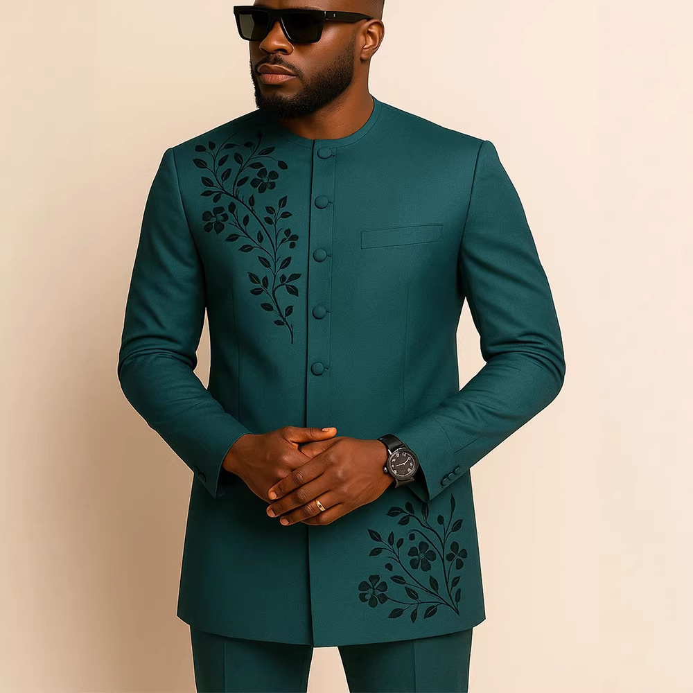 Men Casual Wedding Two-Piece Set: Shirt and Pants