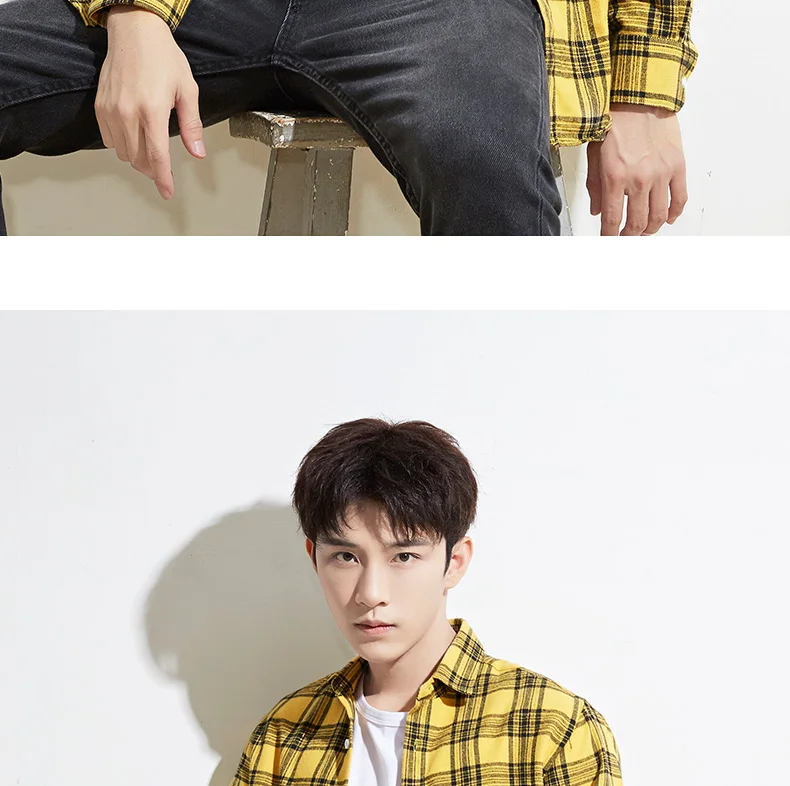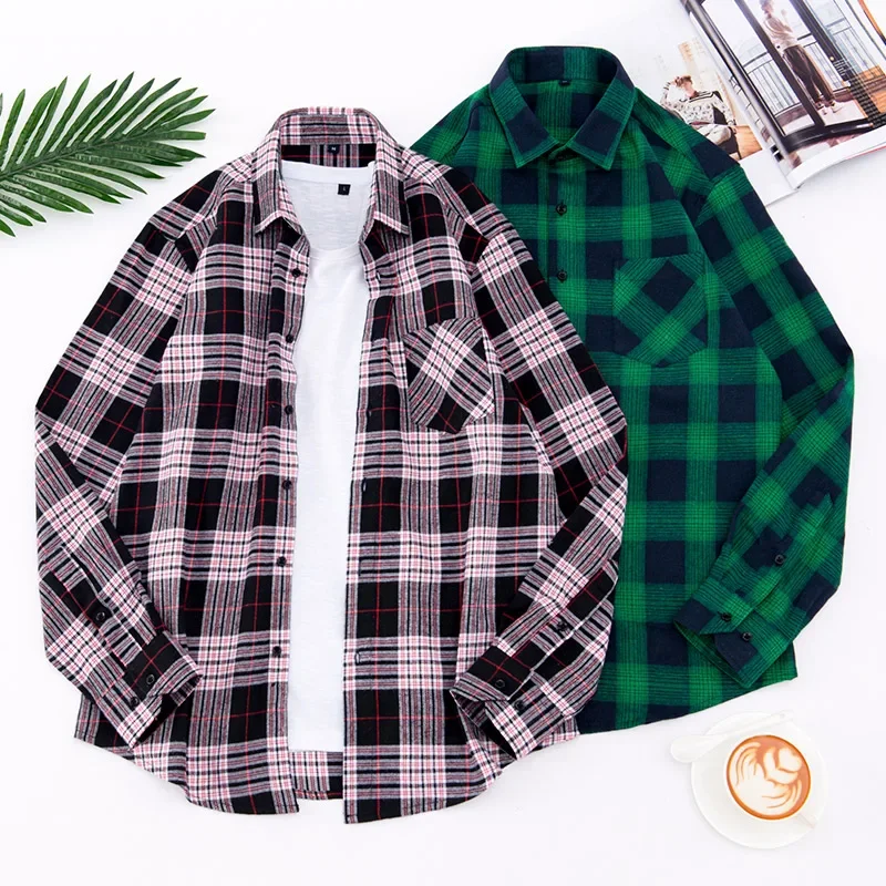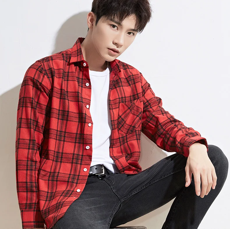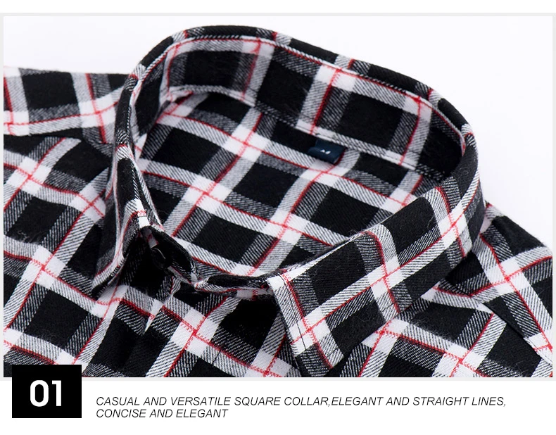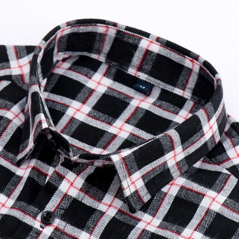 Men’s Plaid Brushed Flannel Long Sleeve Shirts Single Pocket Comfortable Shirt