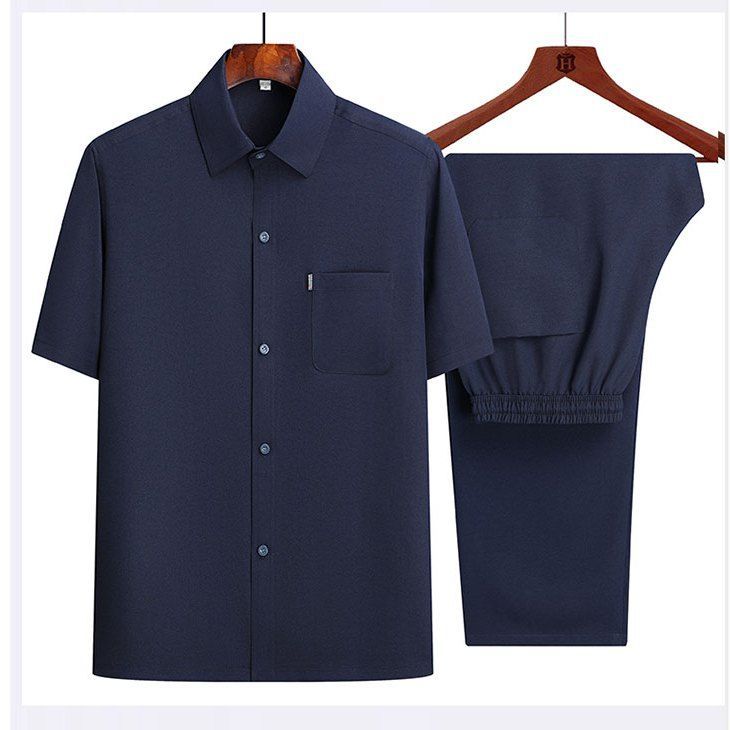 Be the first to review “Men Summer Suit – Ice Silk Short-Sleeve Thin Shirt for Middle-Aged”