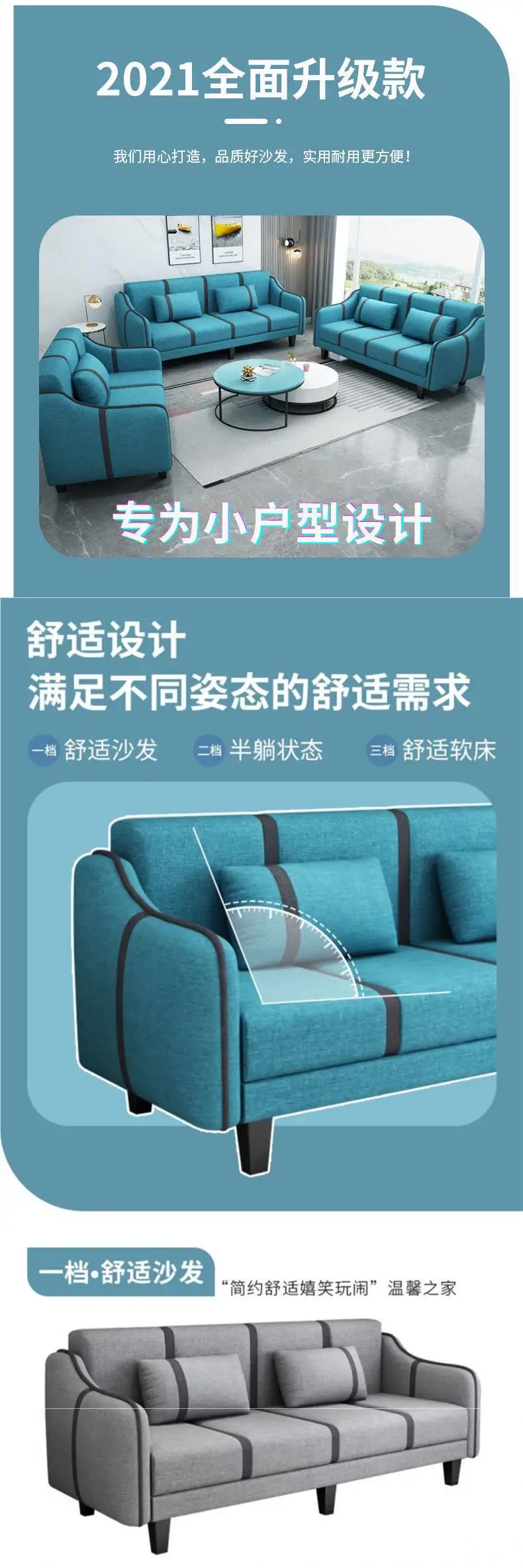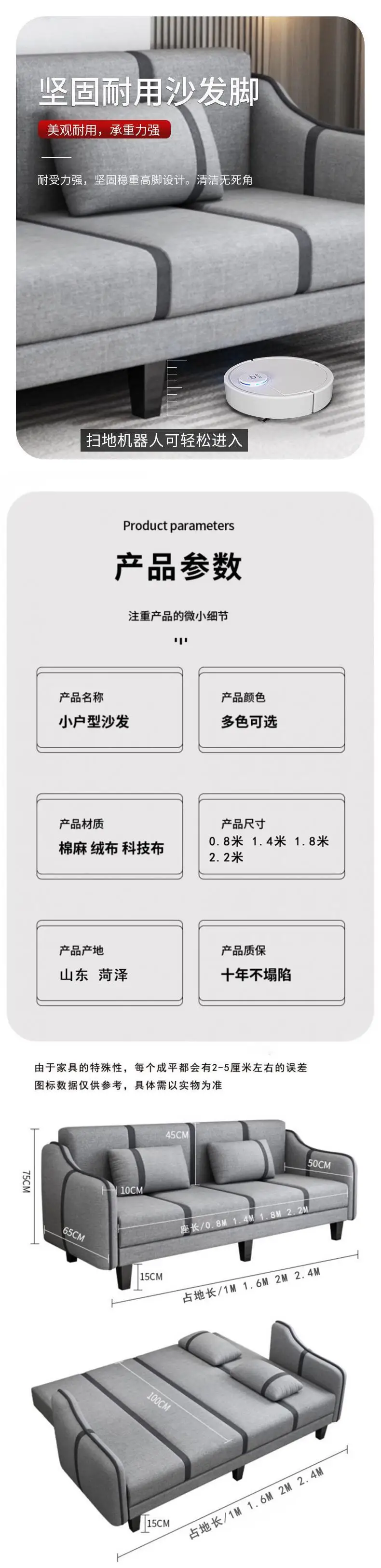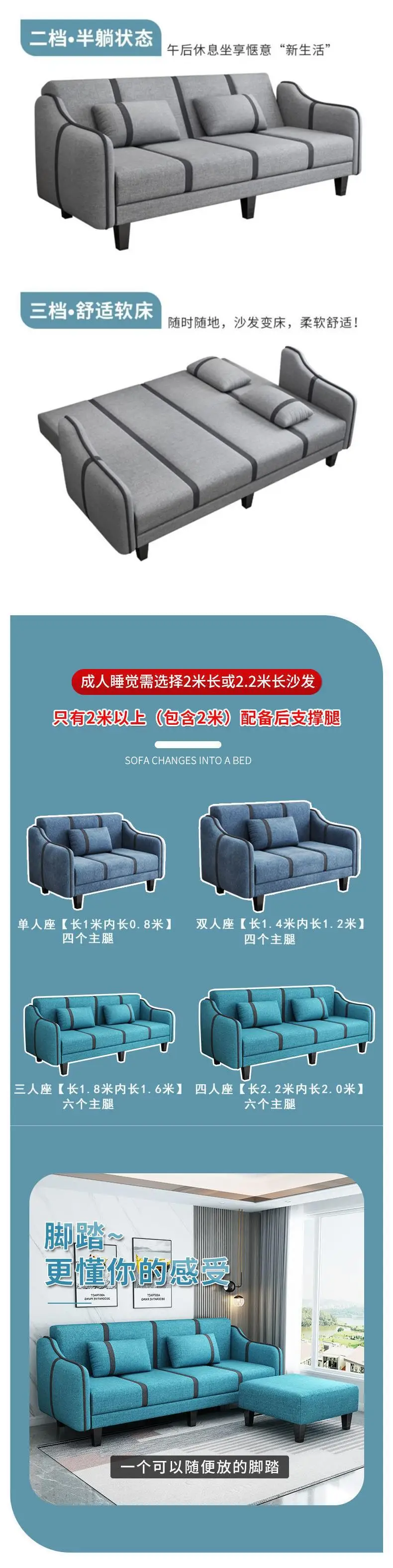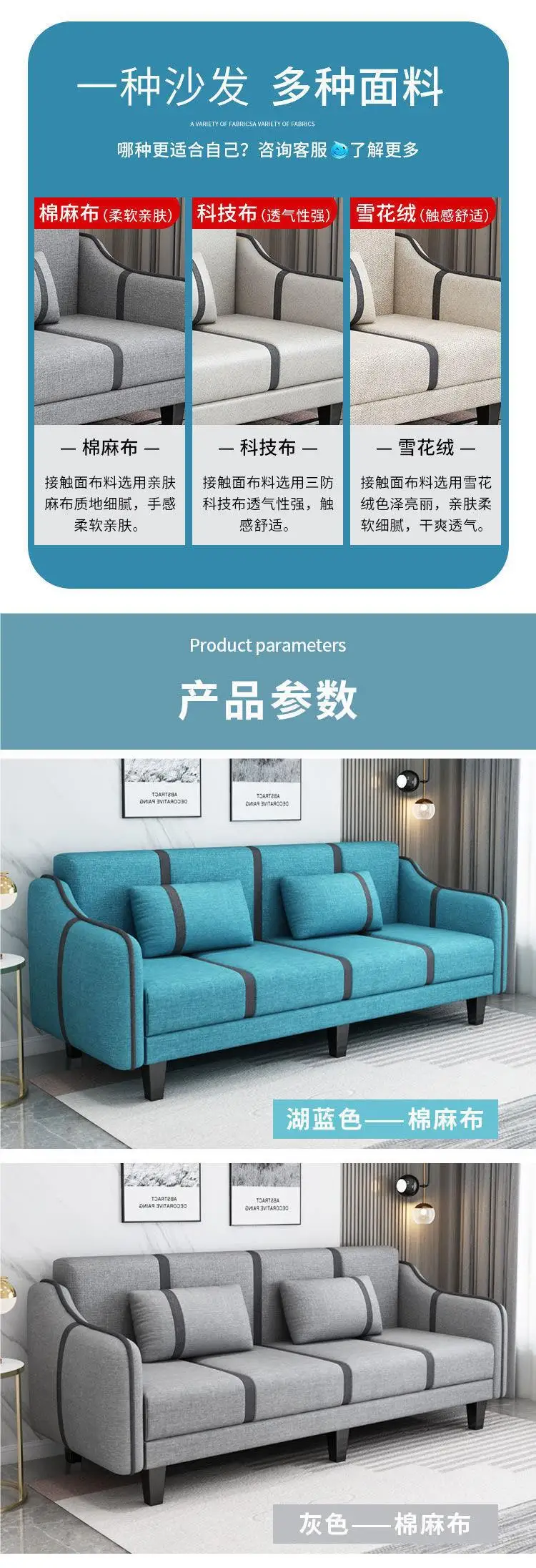 Multifunctional Fabric Sofa Living Room Small Apartment Bedroom Dual-Use Sofa Bed