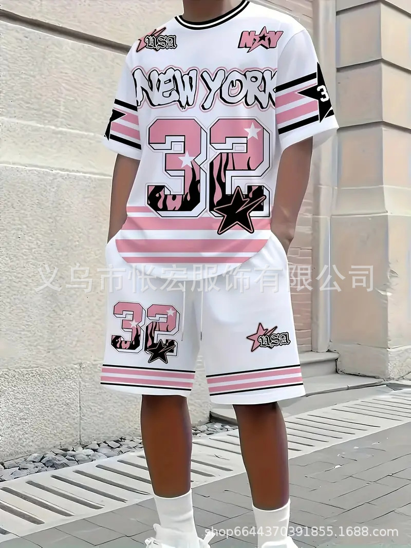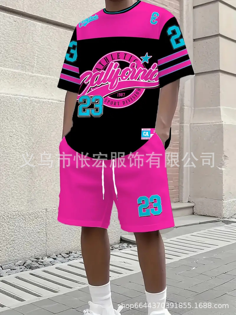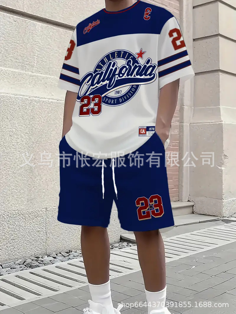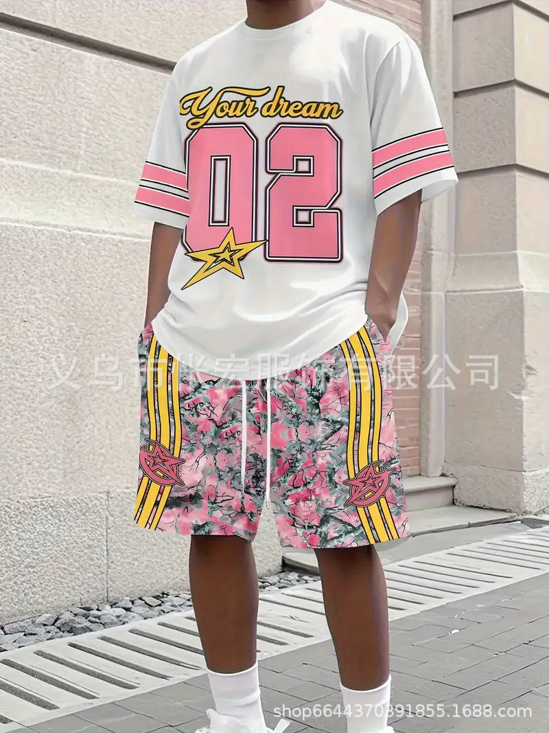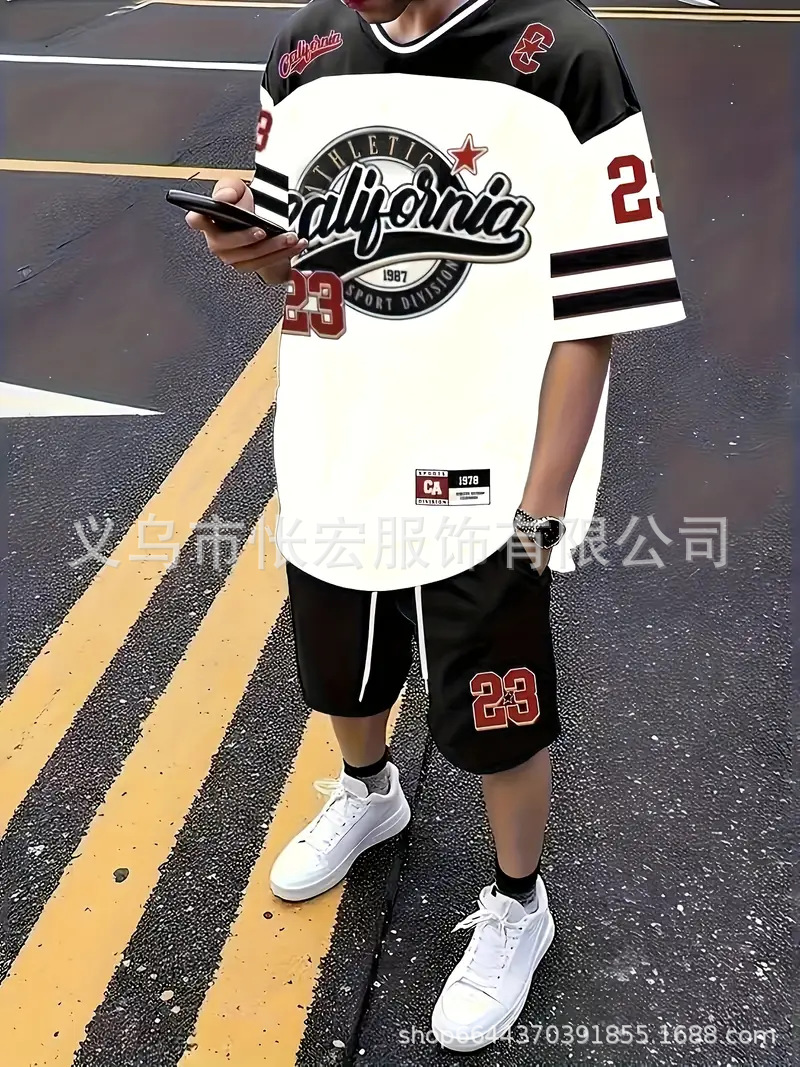 New cross-border men street style hip-hop short-sleeved shirt and shorts set
