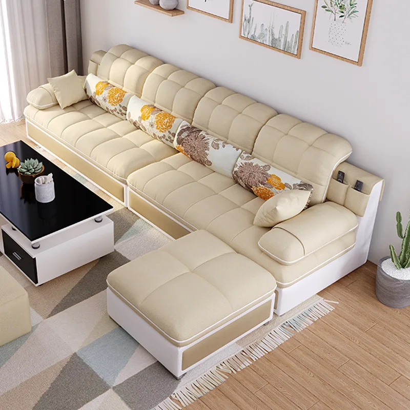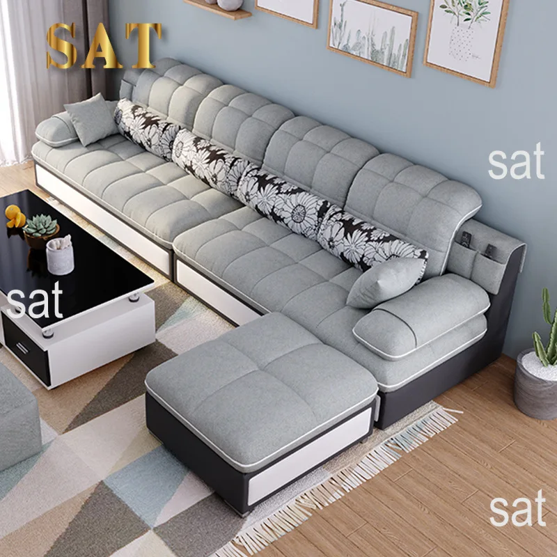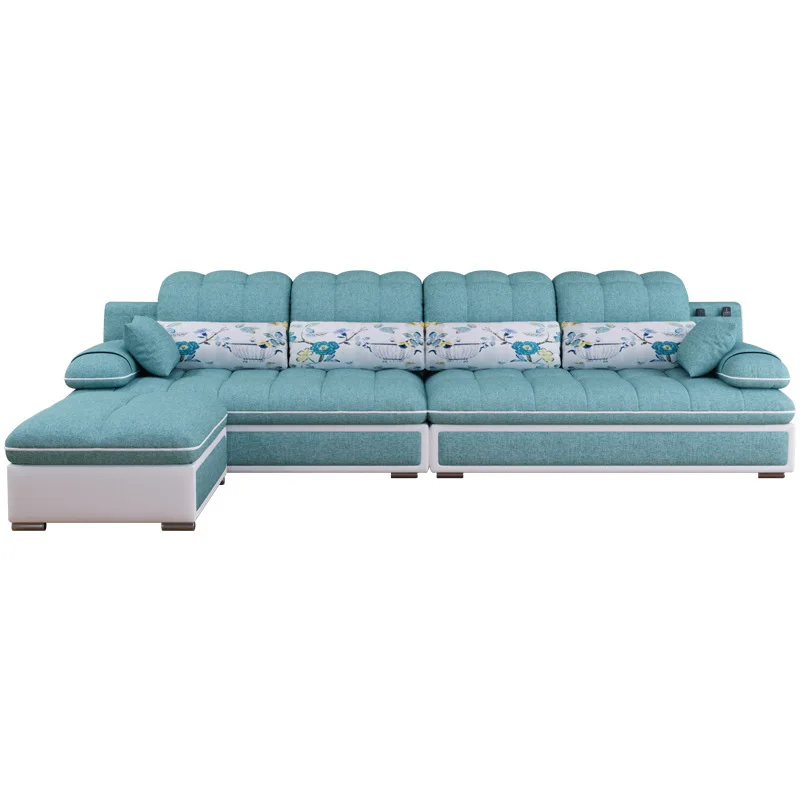 Nordic Modern Sky Blue L-Shaped Corner Sofa Soft Three Seater Loveseat and Bunk Bed Couch Set for Living Room