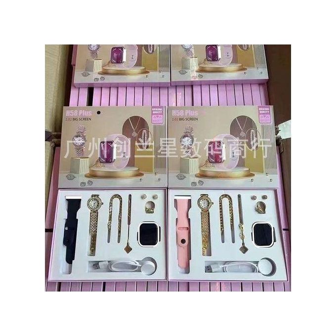 Smartwatch H58 Plus Gift Sets Women Jewelry Suits Montre Intelligent Smartwatch Connected Smart Watch, Necklace, Earrings, Bracelet, Ring, Analog watch, Smartwatch
