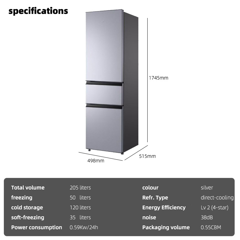 TCL 3-door refrigerator inverter frost-free Four Stars 211L