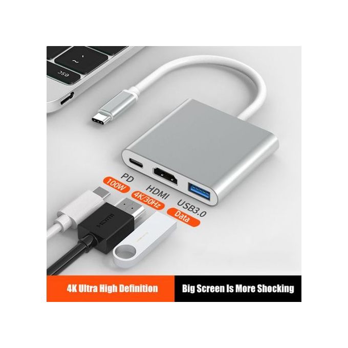 USB Type C Hub HDMI 4K Converter And Charging Port 3in1