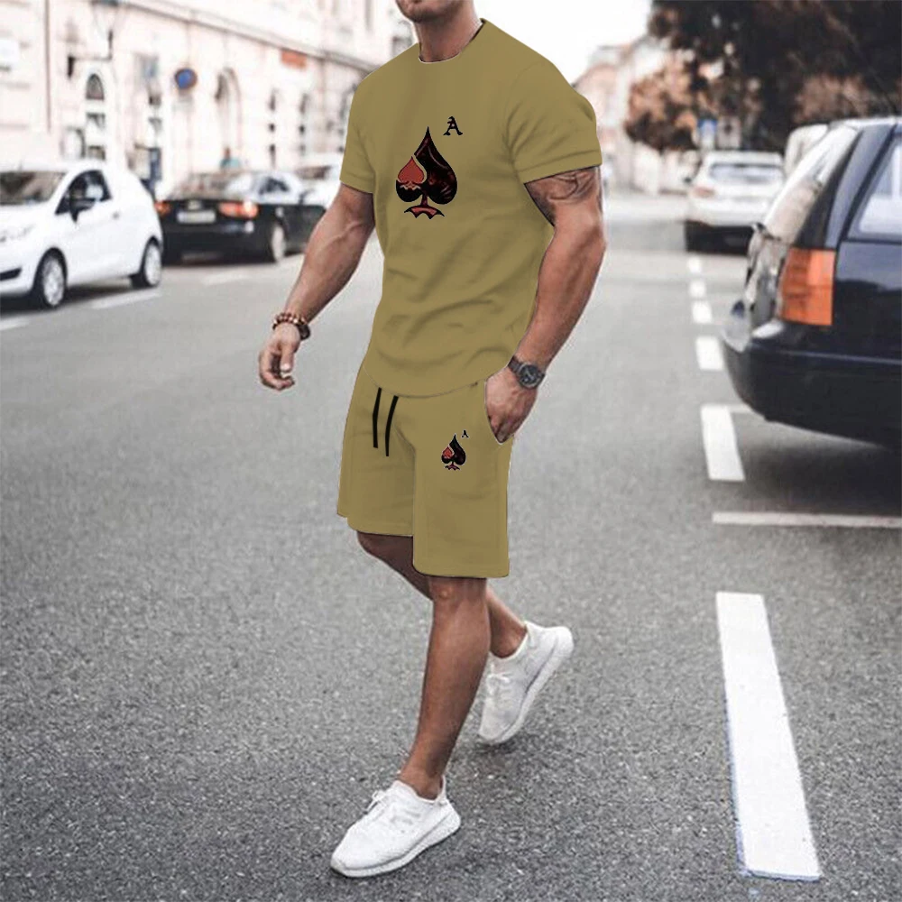 Y2K Men’s Sets T Shirt And Shorts Fashion Digital Letter K Printing Tow-Piece